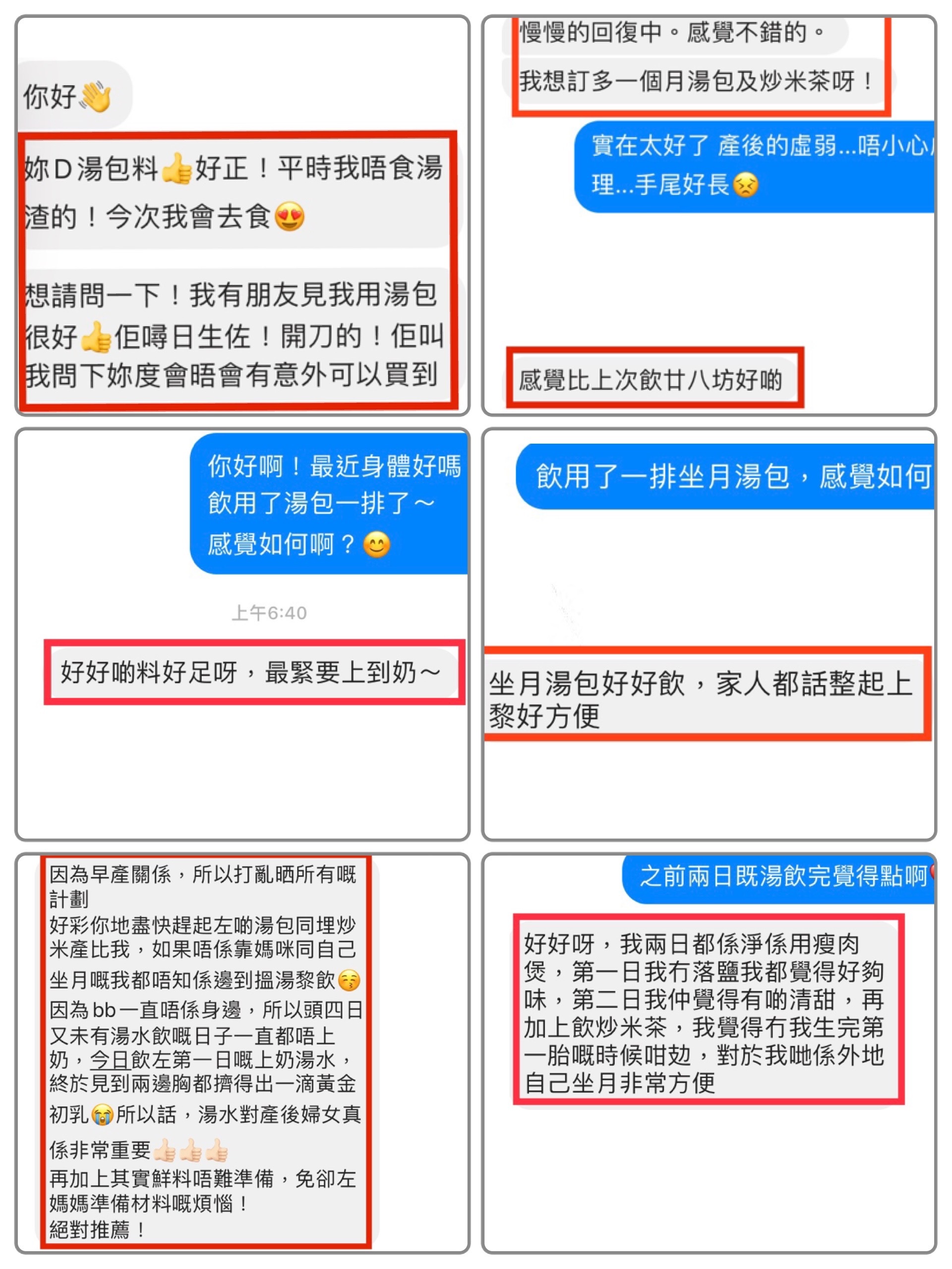 而因產後媽媽體質較虛弱,血氣不足、身體虛寒又易有腰酸背痛問題,所以湯包中的各款材料亦可助產婦補血氣、補腰骨、驅頭風、提高免疫力。